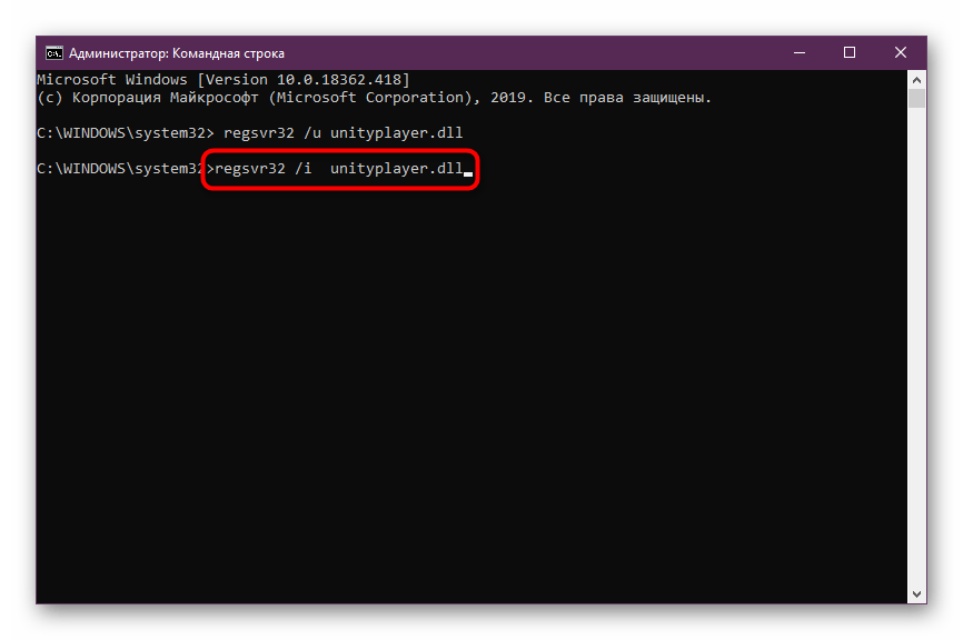 Способ 6: Повторная регистрация UnityPlayer.dll