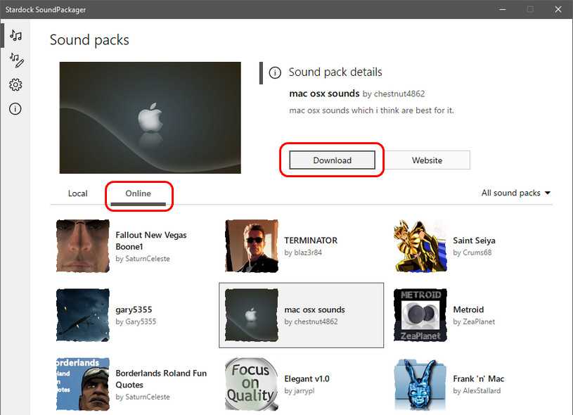Разнообразить изначально небольшую подборку схем в SoundPackager можем, скачав с ресурса программы дополнительные схемы. Идём в раздел «Online», смотрим ассортимент, выбираем заинтересовавшую схему и скачиваем её.