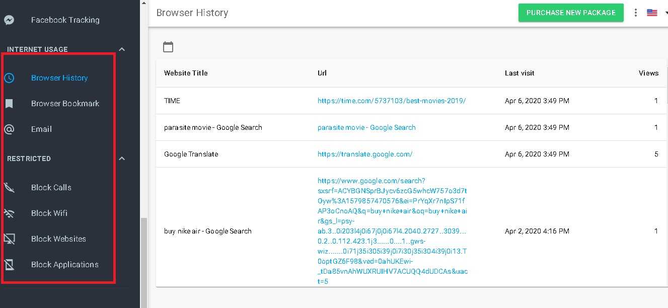 Вы также можете просматривать историю браузера, электронную почту и др., осуществлять блокировку или устанавливать ограничения.
