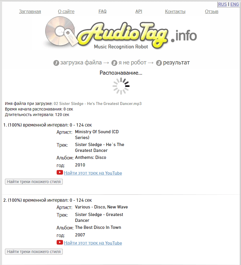 AudioTag.info – поиск песни через браузер