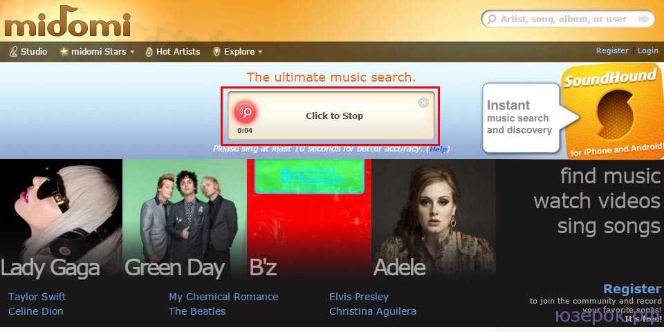 Пользоваться Midomi достаточно просто: