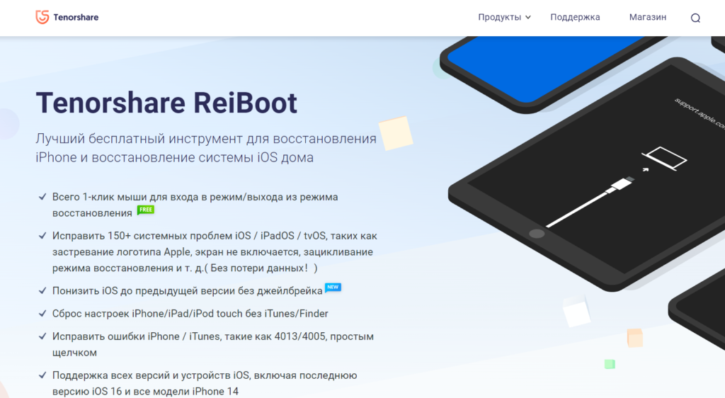 Утилита — бесплатный инструмент для восстановления iPhone и операционной системы iOS. Всего один клик мыши для входа в режим/выхода из режима восстановления.
