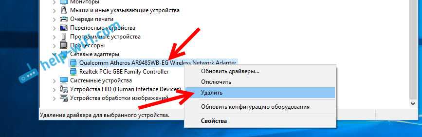 Удаляем драйвер беспроводного адаптера