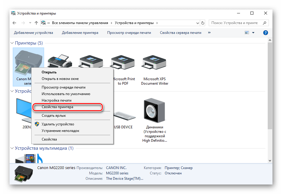 На своем девайсе нажмите ПКМ и выберите пункт «Свойства принтера».