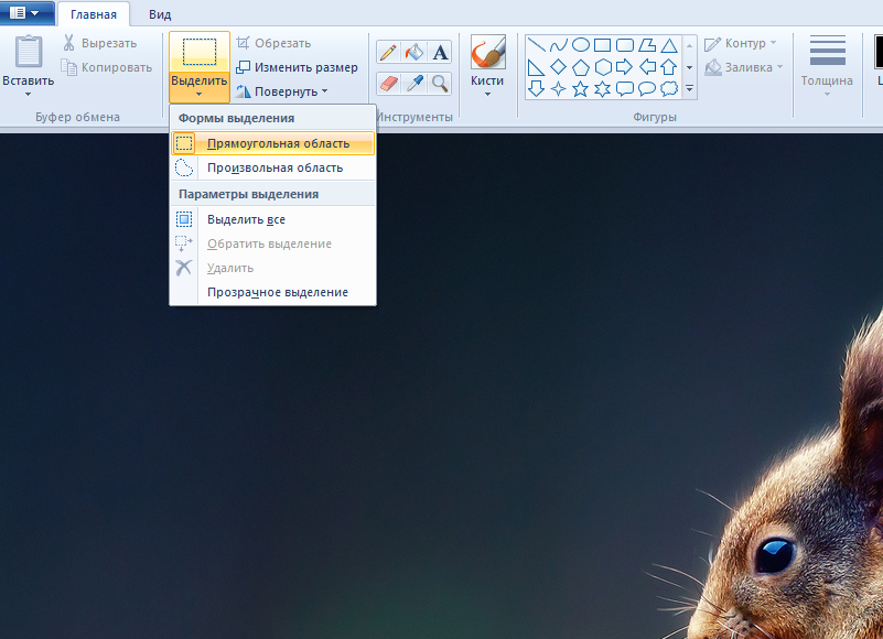 Выделяем необходимую вам область картинки. Для этого нажимаем «Выделить»