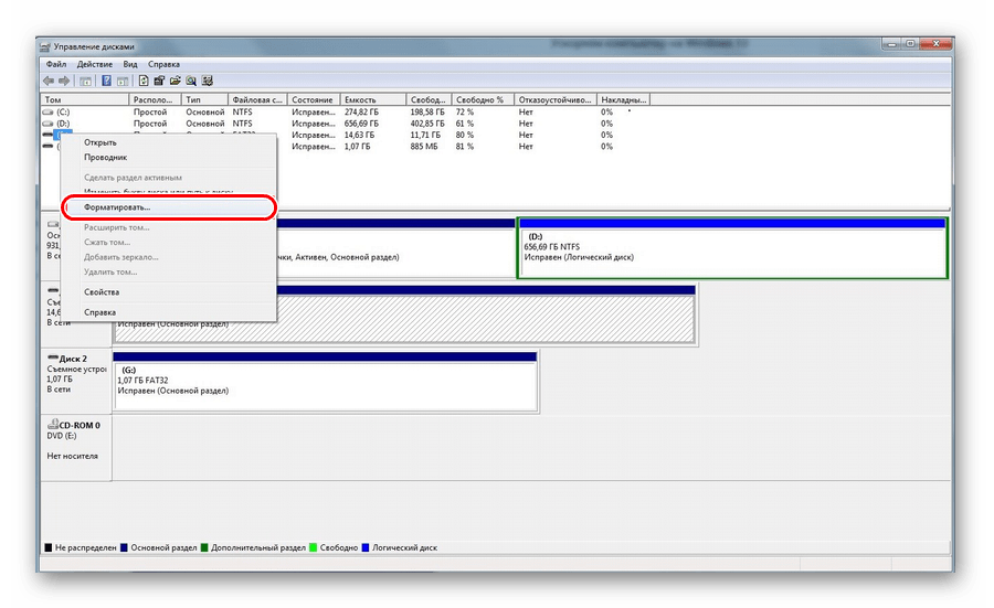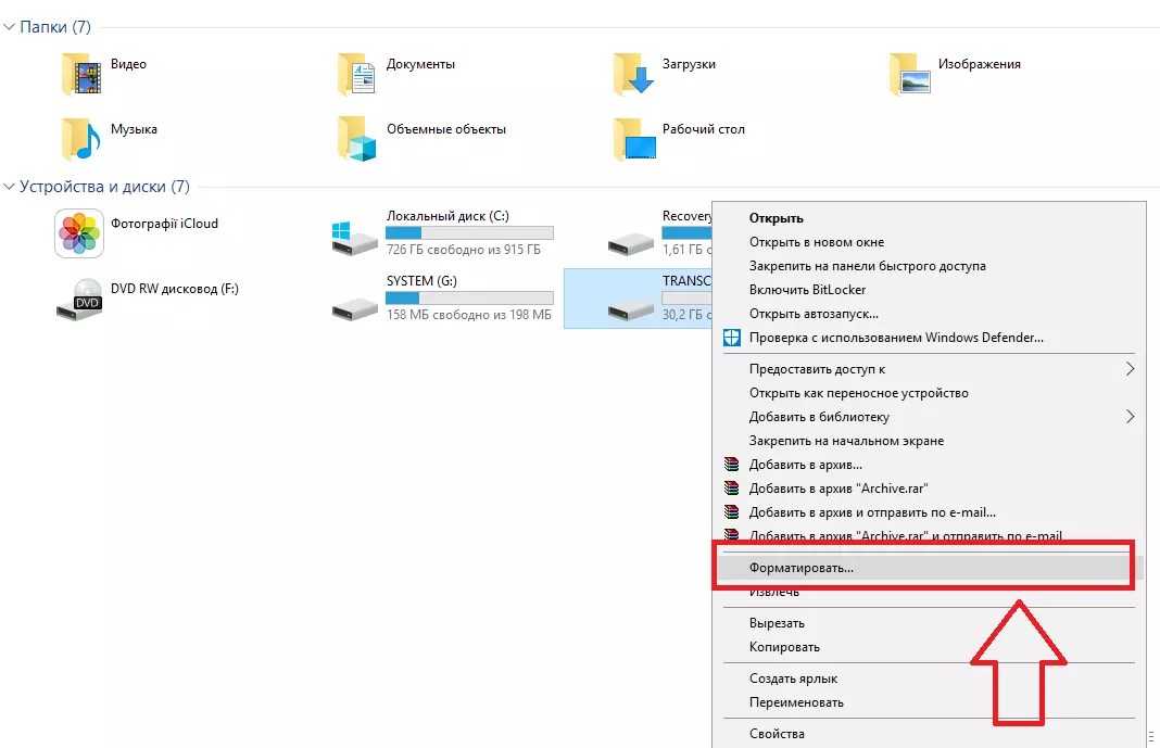 ; - Далее кликните на значке устройства правой кнопкой и выберите пункт «Форматировать»
