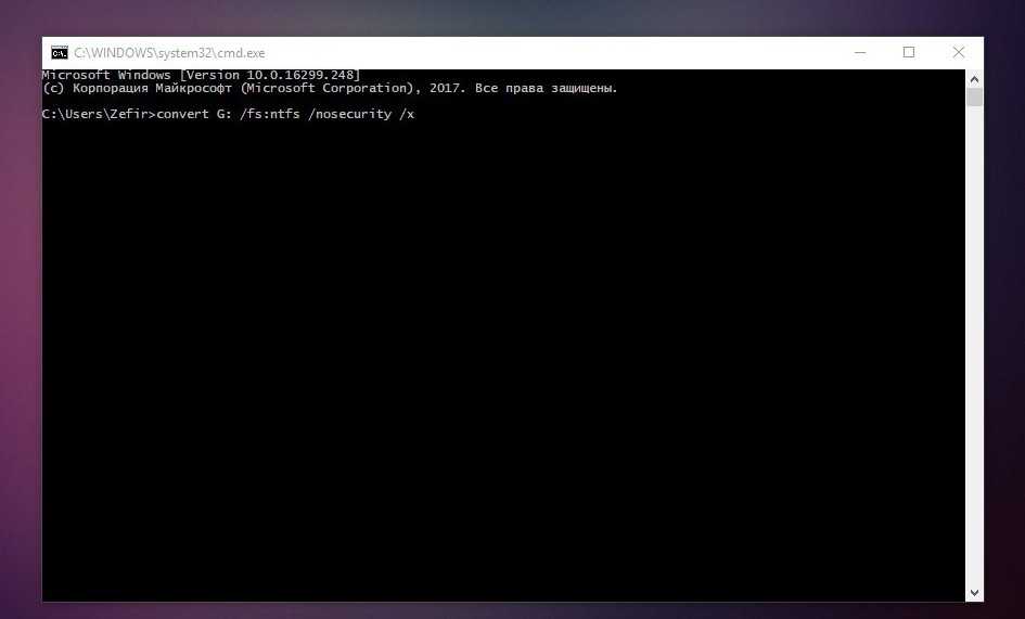 Очистить флешку от записей можно при помощи командной строки. Для начала нужно установить накопитель в порт USB. Теперь открываем командную строку. Делаем это следующим образом: нажимаем сочетание кнопок Win+R, в открывшемся окошке пишем cmd и нажимаем Enter. Теперь в командной строке необходимо ввести следующий текст: convert: /fs:ntfs /nosecurity /x, где буква флешки в проводнике. Вот пример: