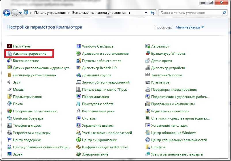 Находясь в панели управления, выберете режим просмотра «Мелкие значки», как показано на скриншоте: