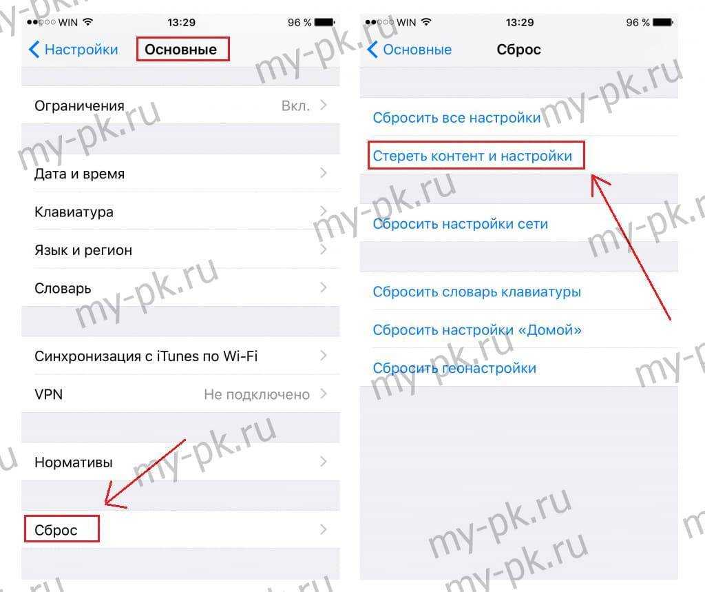- войдите в «Настройки» — «Основные» — «Сброс»;