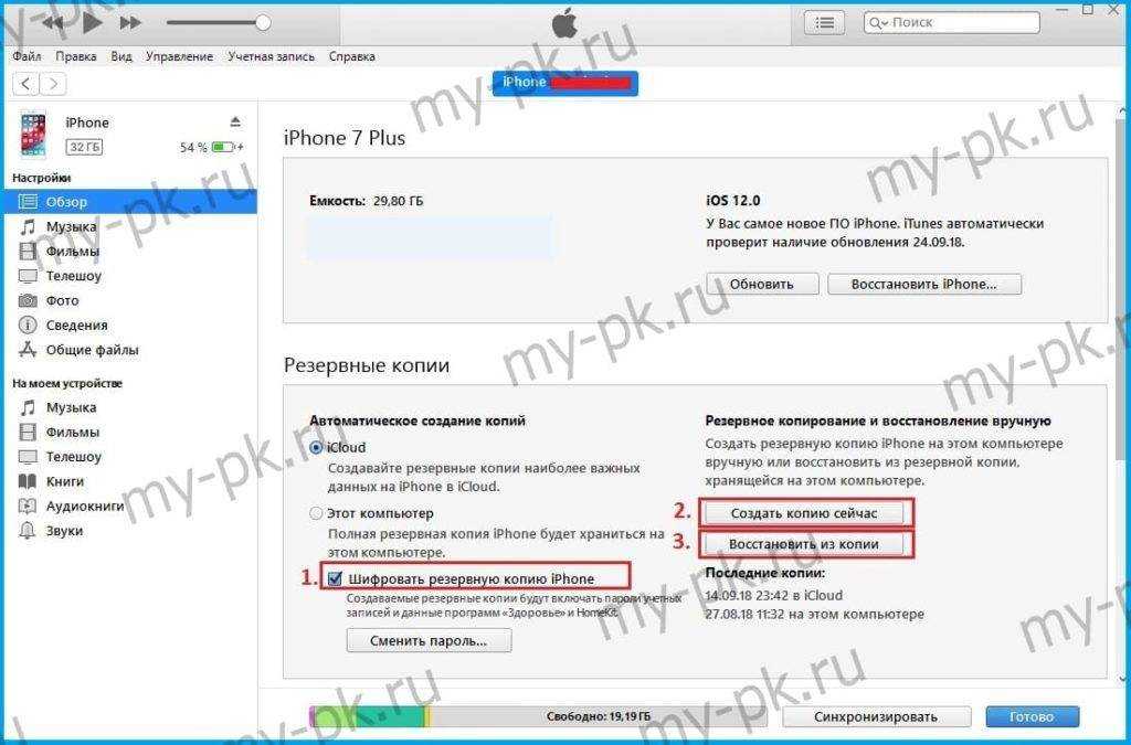 - Здесь необходимо перейти в iTunes, активировать опцию «Восстановить из копии».