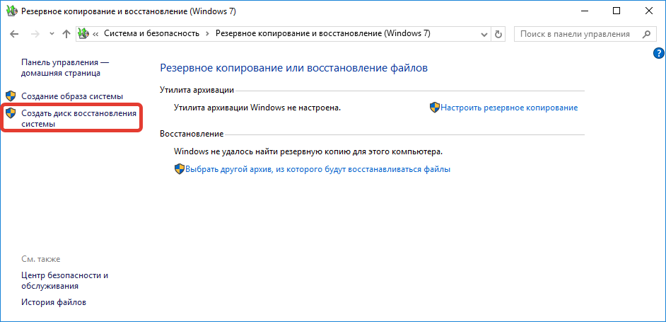 Для быстрого возвращения работоспособности ОС рекомендуется создавать диск восстановления. Самым простым способом является применение встроенных средств: