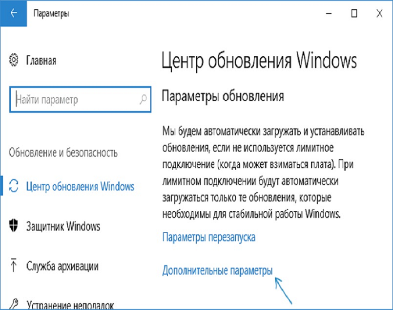 - Раскройте заголовок «ДополнительныеПараметры», без перехода в «ЦентрОбновлений»;