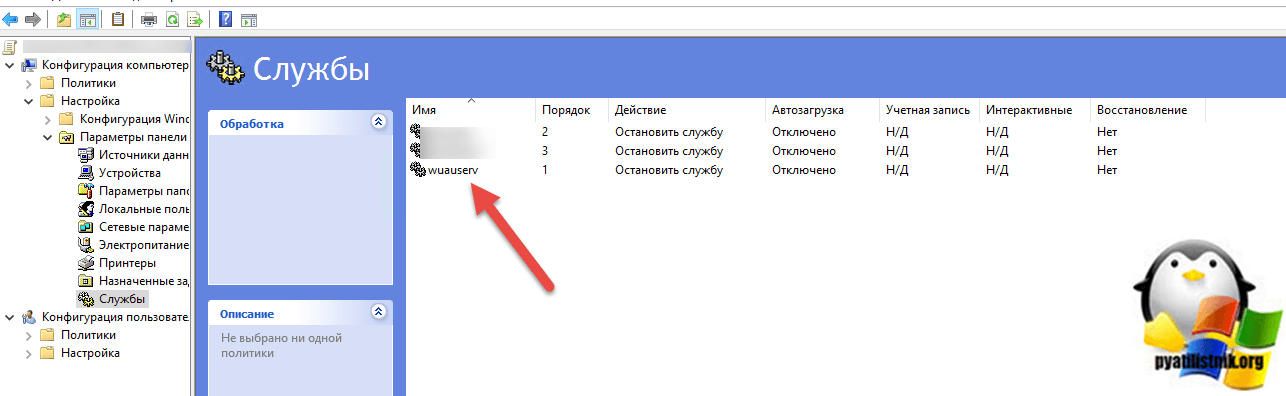 Конфигурация компьютера — Настройка — Параметры панели управления — Службы (Computer Configuration — Settings — Control Panel Options — Services)