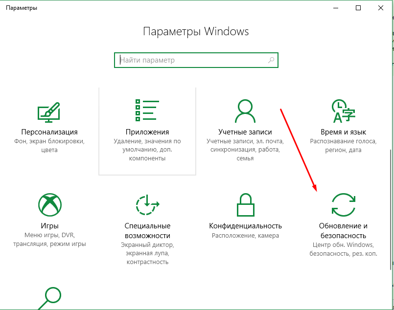 - Через раздел «ПараметрыКомпьютера» перейдите к «ОбновлениеИбезопасность»;