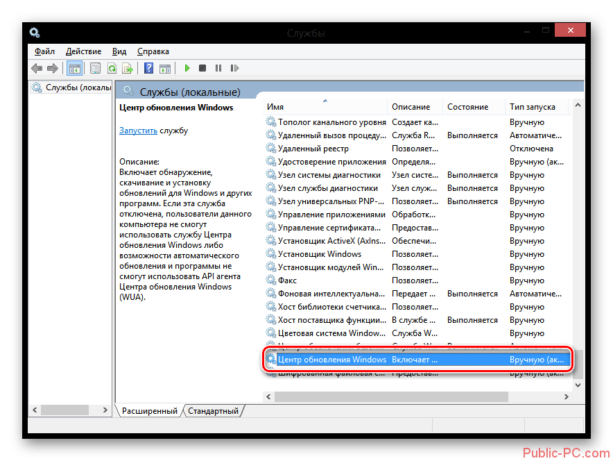 Другим способом обновление Windows 8 отключается путем остановки службы, отвечающей за обновление системы.