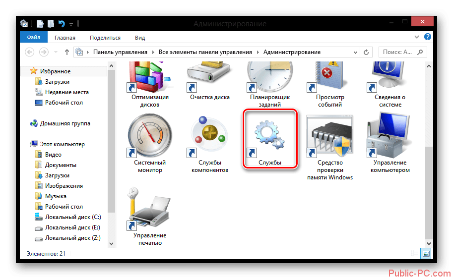В отобразившемся окне найдите значок «Службы» и дважды нажмите на него ЛКМ.