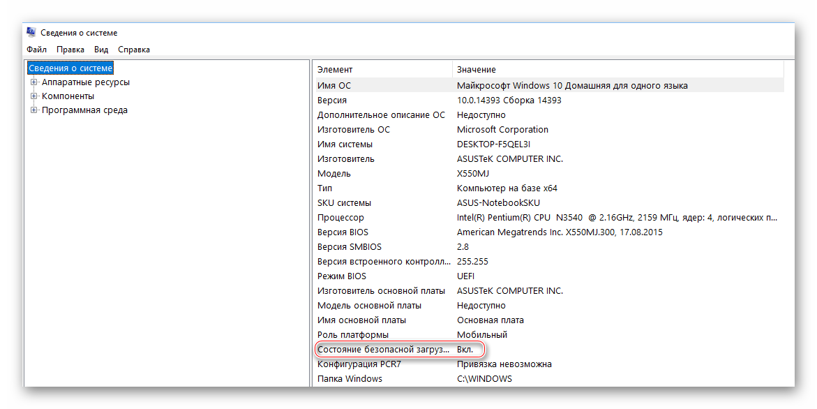 В ОС Windows 8 и более новых версиях можно узнать, включена или отключена на компьютере безопасная загрузка. Для этого воспользуйтесь комбинацией клавиш Win+R, чтобы открыть окно «Выполнить», а затем пропишите в поле для ввода (без кавычек) «msinfo32». В разделе «Сведения о системе» вы найдёте необходимую информацию. Так вы можете узнать о состоянии функции безопасной загрузки на вашем ПК.