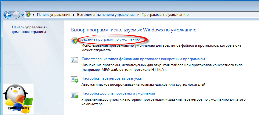 Изменение ассоциации файла программе настраивается через элемент Панели управления «Программы по-умолчанию».