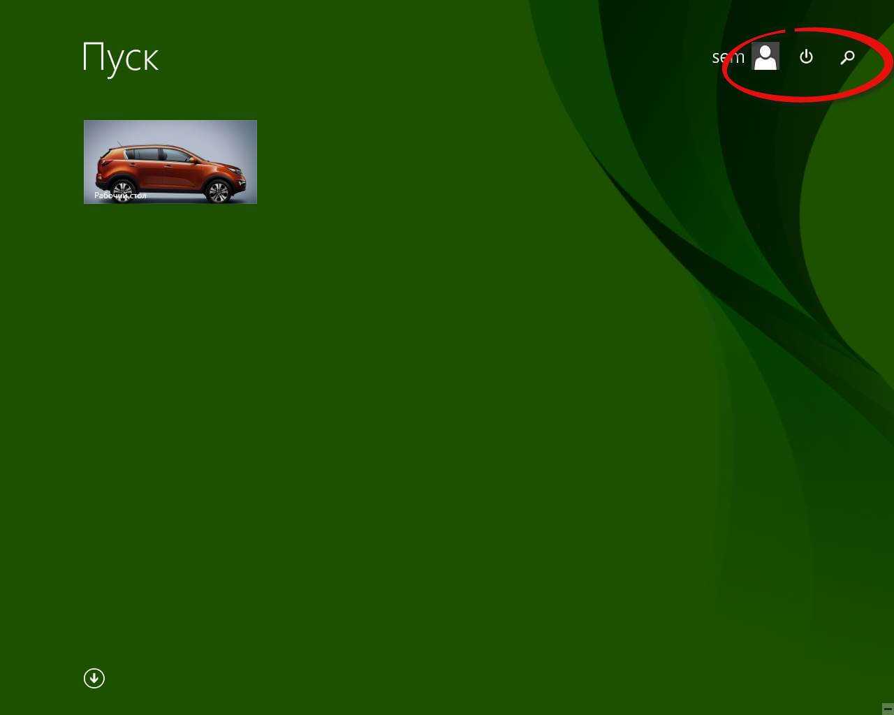 В версии выше Windows 8 для того чтобы применить этот способ, нужно щёлкнуть на лупу рядом с именем пользователя.