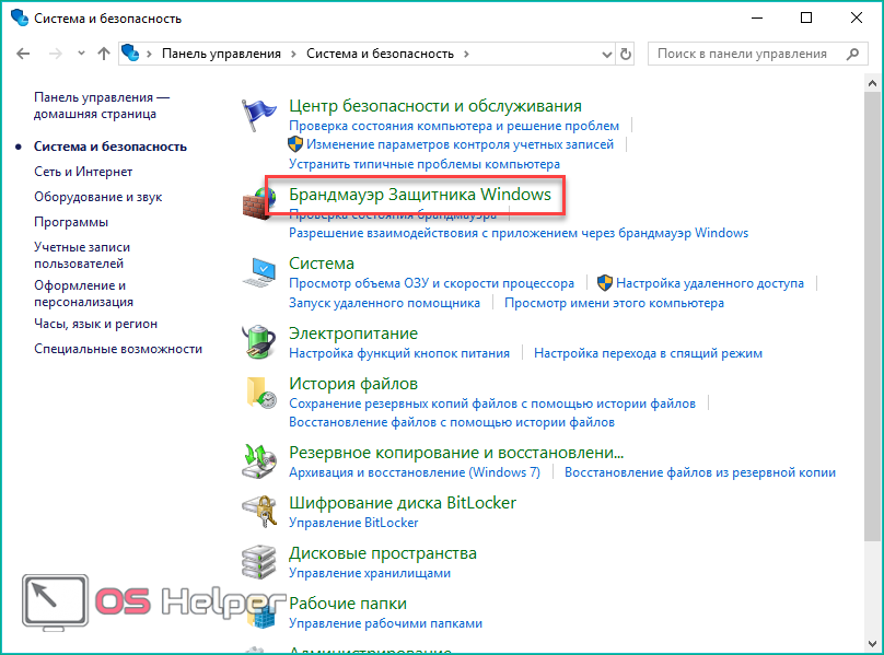 - Теперь откройте подраздел Брандмауэр Защитника Windows».