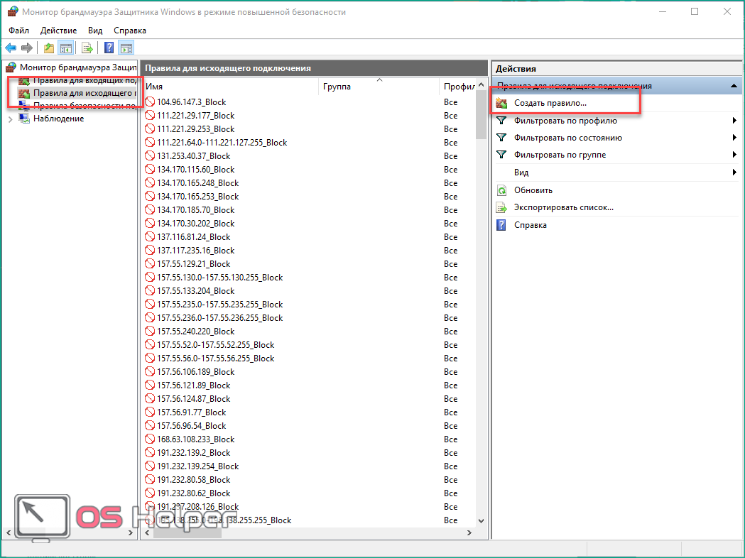 - Теперь в главном окне выберите «Outbound Rules» и снова нажмите «Create Rule». Выполните ту же операцию, что и описано выше. После завершения настройки у вас должно быть 4 правила (2 для входящего подключения и 2 для исходящего подключения) для порта 25565.
