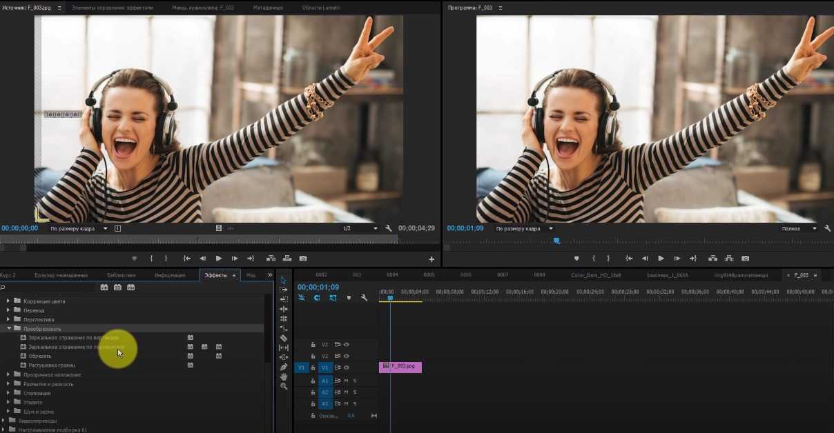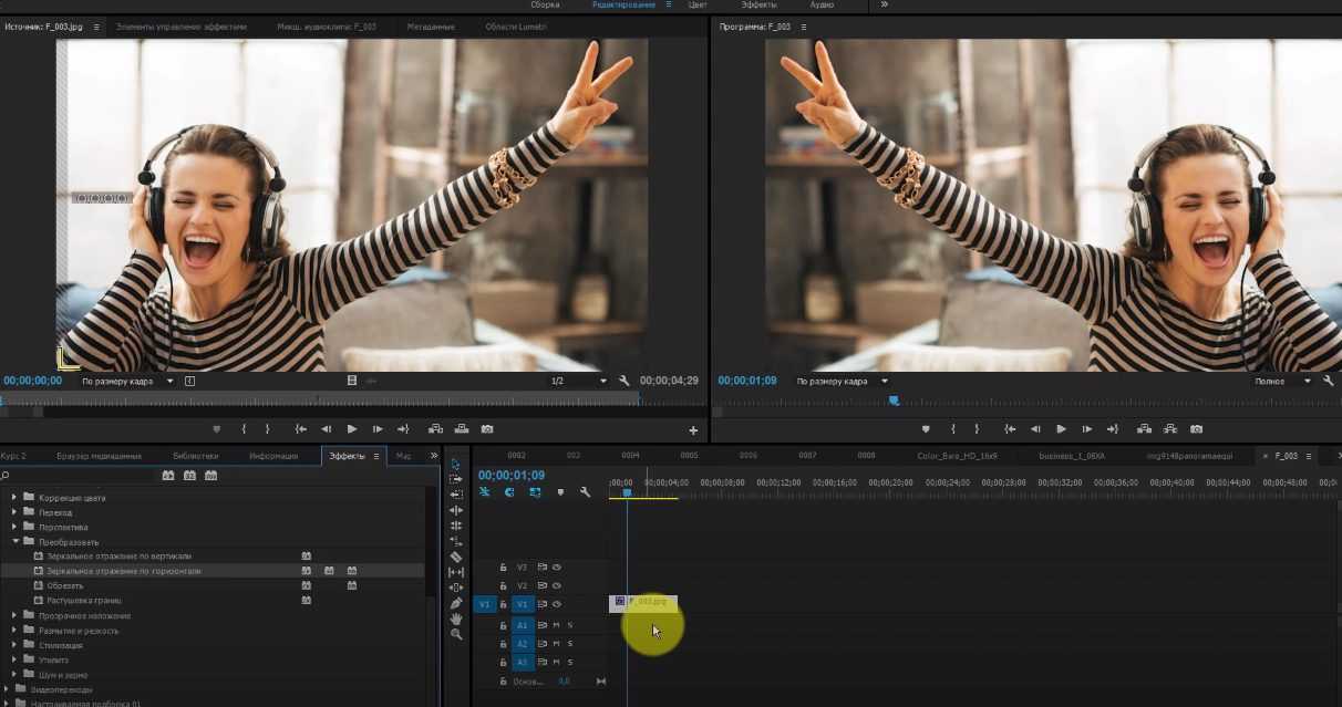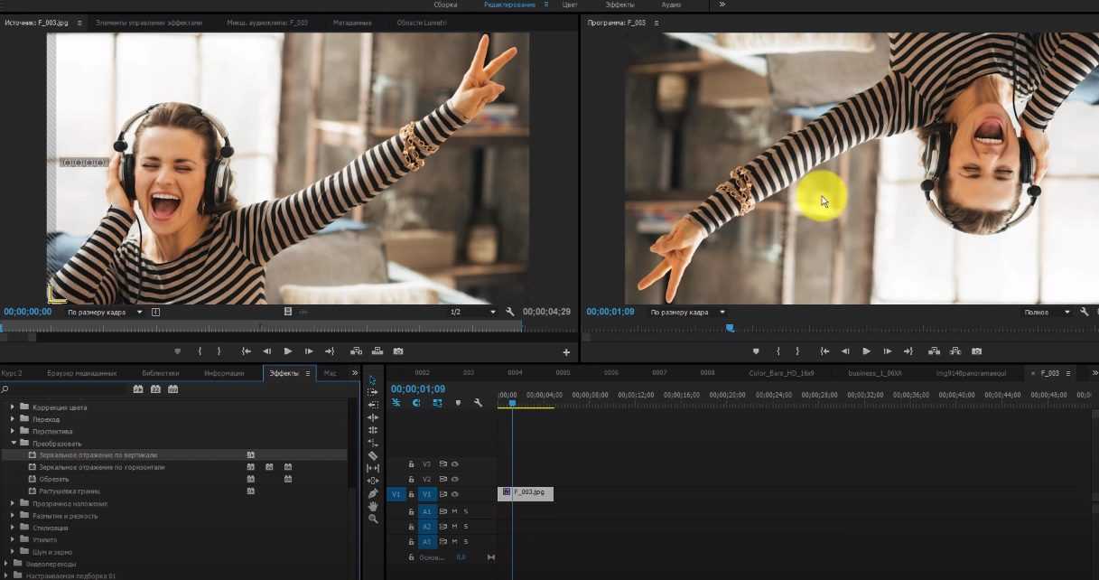 Повернуть/перевернуть видео в Adobe Premiere Pro CC