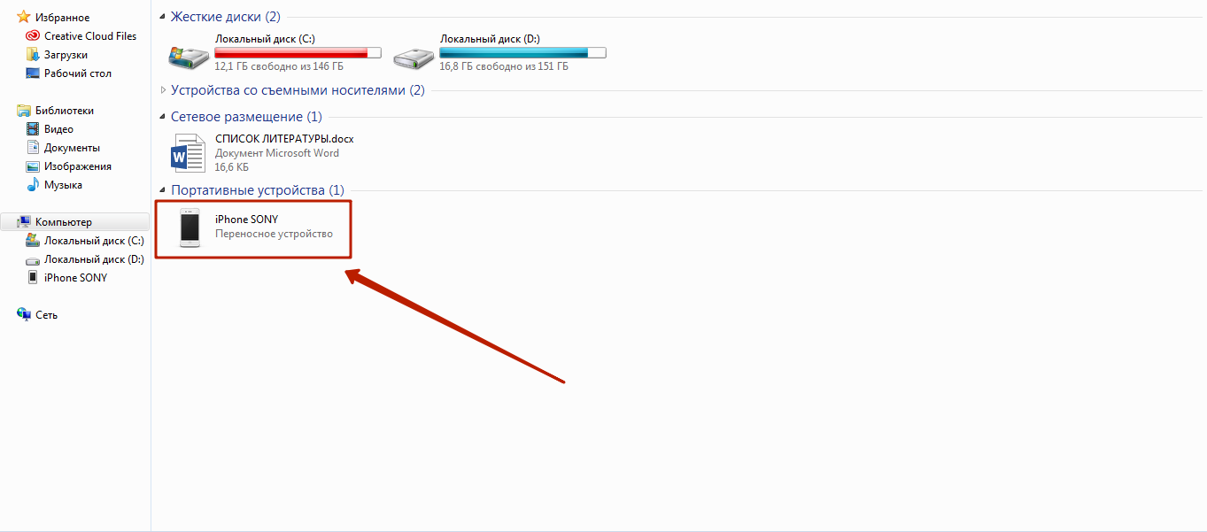 Шаг 6. Зайдите в «Мой компьютер» — вы увидите в списке портативных устройств свой iPhone.