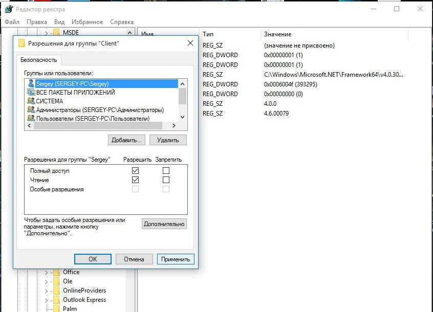 Windows 10 — Как получить полный доступ к конкретной записи реестра для редактирования или удаления.