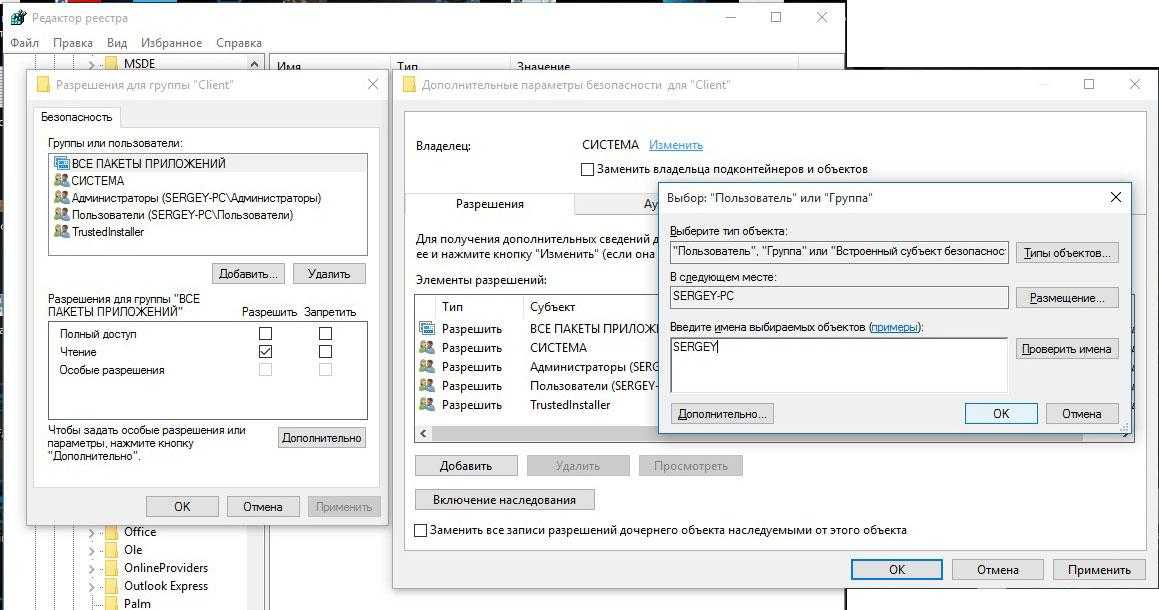 После выполнения этих шагов вы сможете редактировать и удалять параметры и разделы реестра, находящиеся внутри раздела, для которого были изменены разрешения. Ошибки «Ошибка при записи нового значения параметра», «Не удается удалить все выделенные параметры», «Ошибка при удалении раздела», «Ошибка при переименовании раздела» появиться не должны.