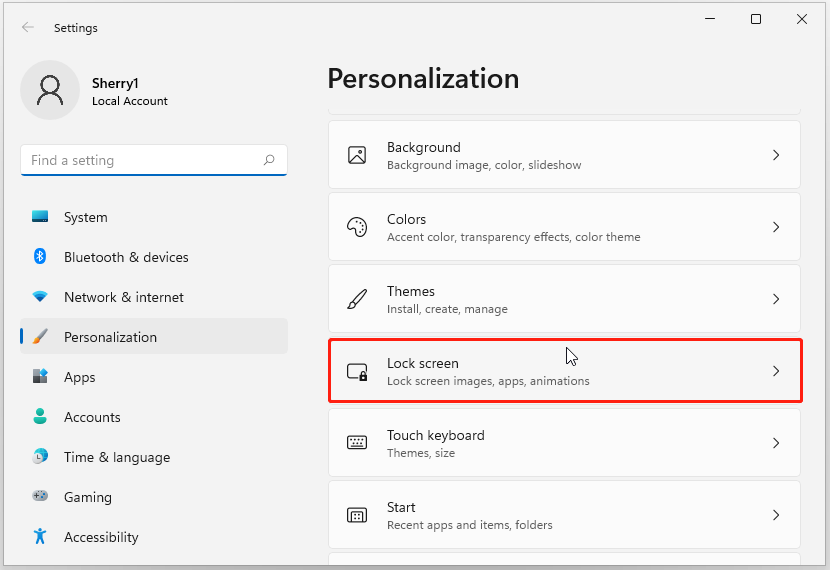 Usually, the lock screen background can change according to Windows 11 themes. If you don’t like the pictures included in the Microsoft themes, you can personalize your lock screen by yourself. And here are the detailed steps. Please follow them one by one.