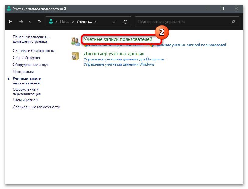 - В открывшемся одноимённом окне щёлкнуть раздел «Учётные записи».