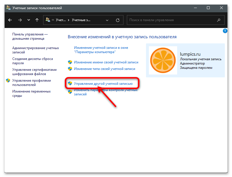 - Учетные записи и Семейная безопасность – Изменение типа учетной записи;
