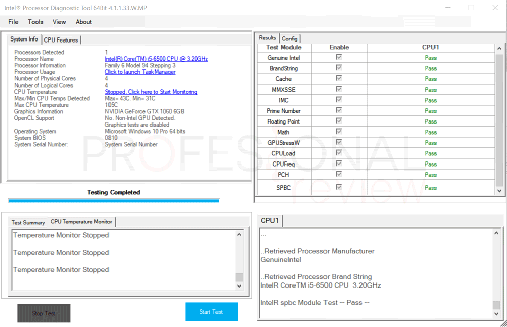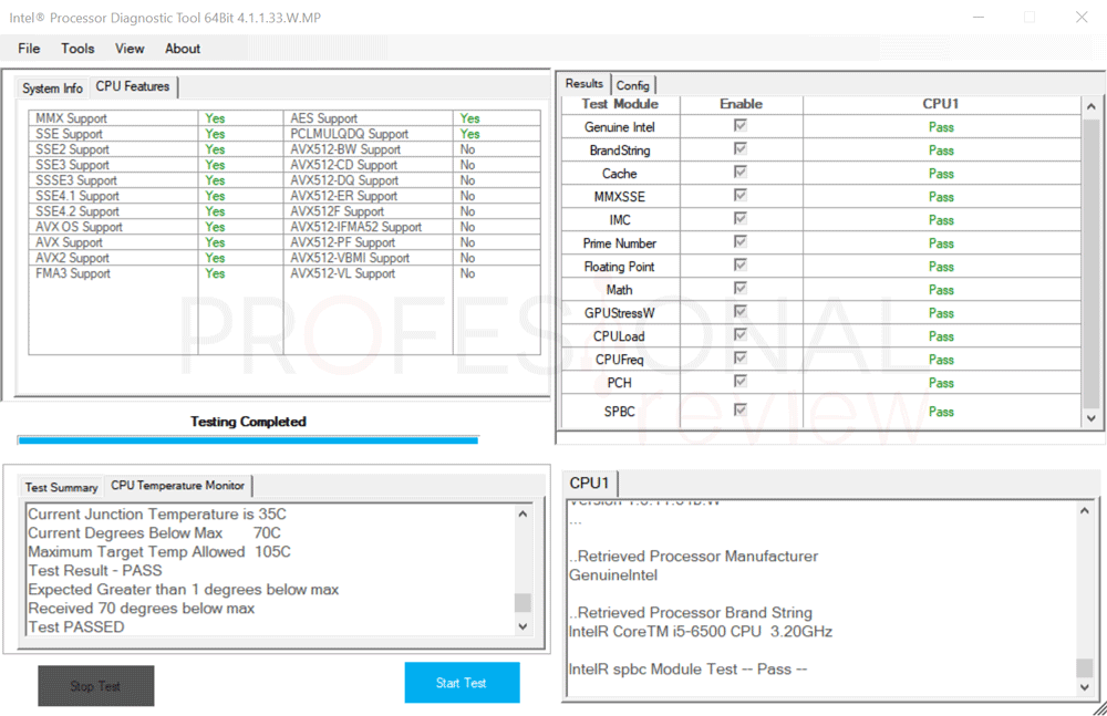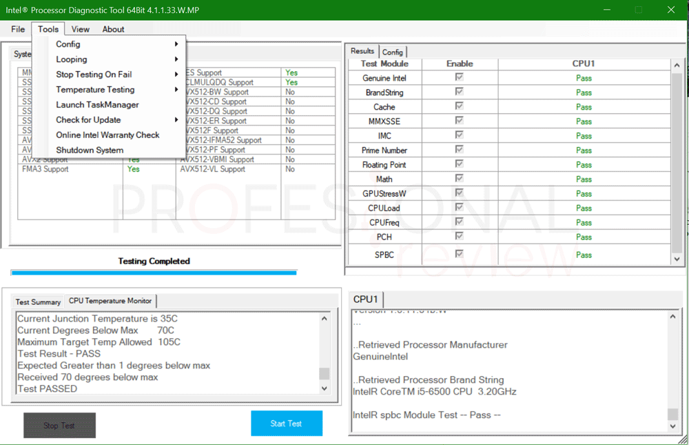 Справа будут представлены все тесты, которые необходимо выполнить, « пройти » будет означать, что мы прошли, и « провалиться », потому что что-то не так. Это будет момент, когда нам придется перейти на страницу Intel и поднять проблему на ее форуме. Конечно, они будут знать, что делать или что вызывает проблему.