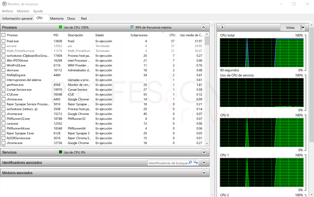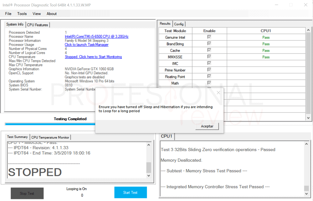 Во втором случае у нас будет больше доступных опций, которые в основном состоят в том, чтобы активировать или деактивировать различные варианты тестирования. Хотя мы также можем проверить гарантию на процессор, выключить систему, проверить наличие обновлений или открыть диспетчер задач. В этом разделе мы видим опцию « Looping », которая в основном активирует возможность рекурсивного выполнения теста.