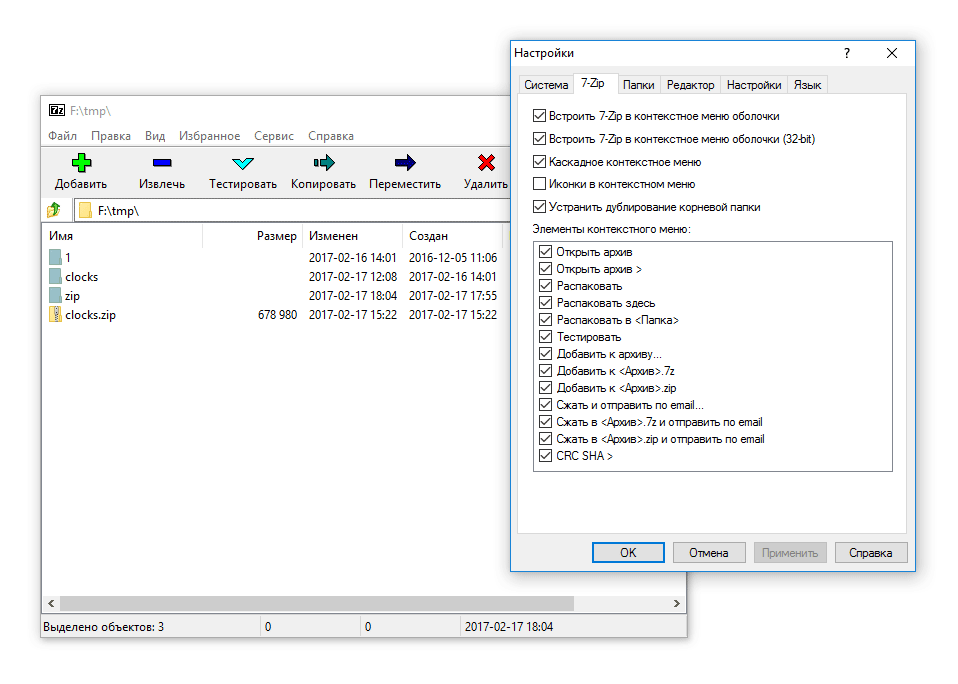 Так же, как и у платных собратьев, в случае с 7zip в контекстное меню Windows добавляются пункты контекстного меню: