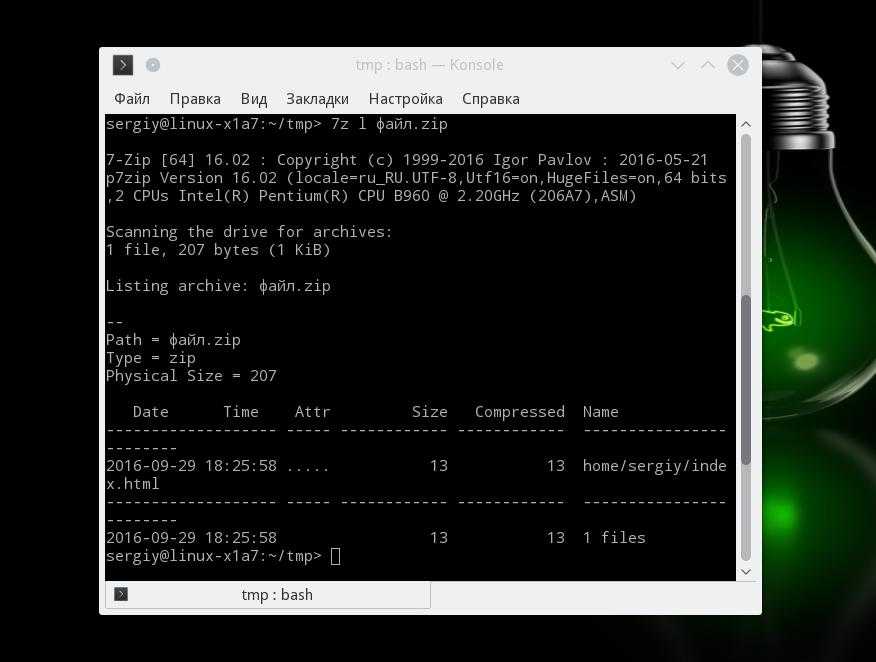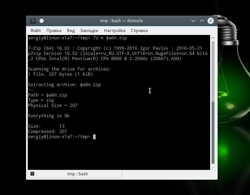 Таким образом вы сможете распаковать zip архив или любой другой формат, поддерживаемый программой 7zip.