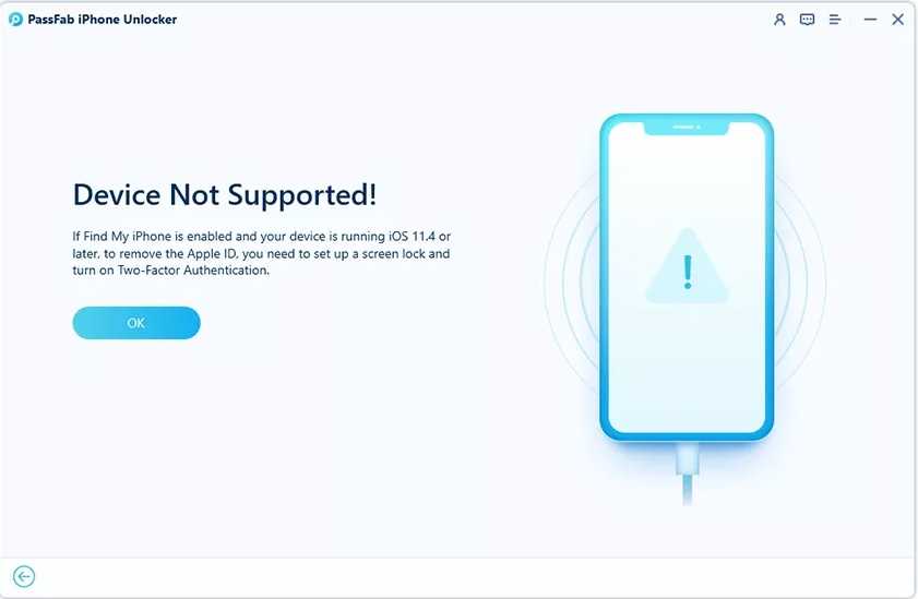 - если это версия iOS от 11.4 и выше и при этом гаджет не активирован, тогда провести процесс разблокировки через PassFab iPhone Unlocker не получится.