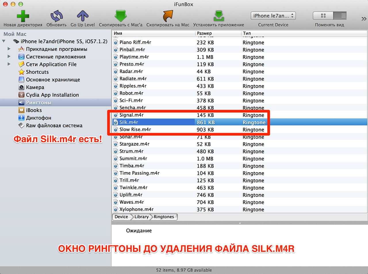 Рингтоны в iPhone до удаления файла Silk.m4r