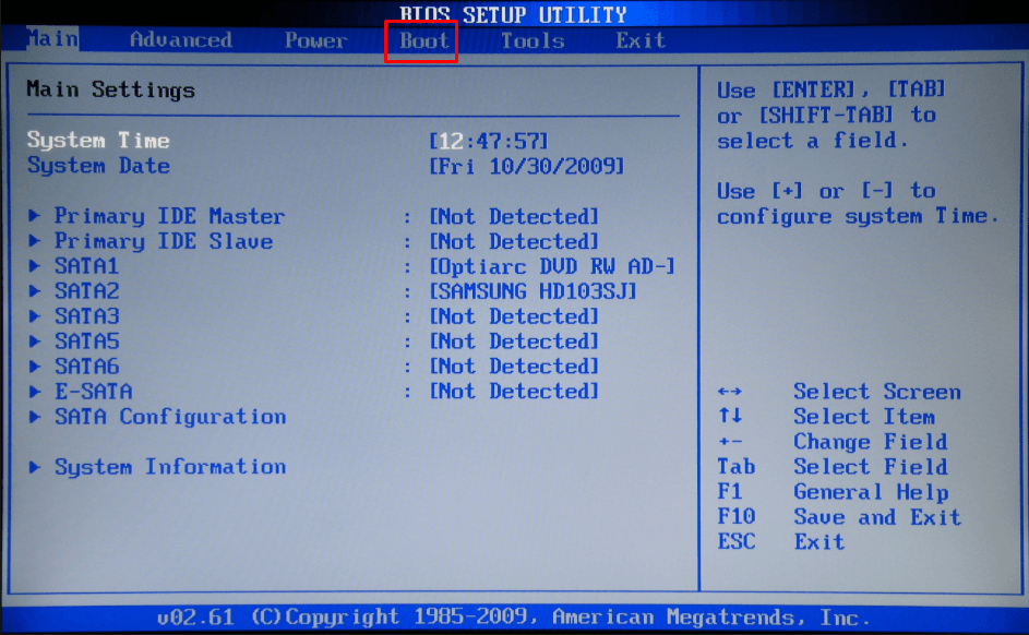 - Сохраняем настройки (клавиша F10 — Save and Exit) и дожидаемся выключения компьютера, после чего его опять включаем и жмем F9 на экране загрузки.