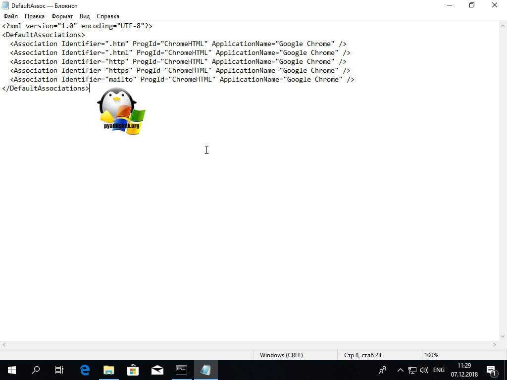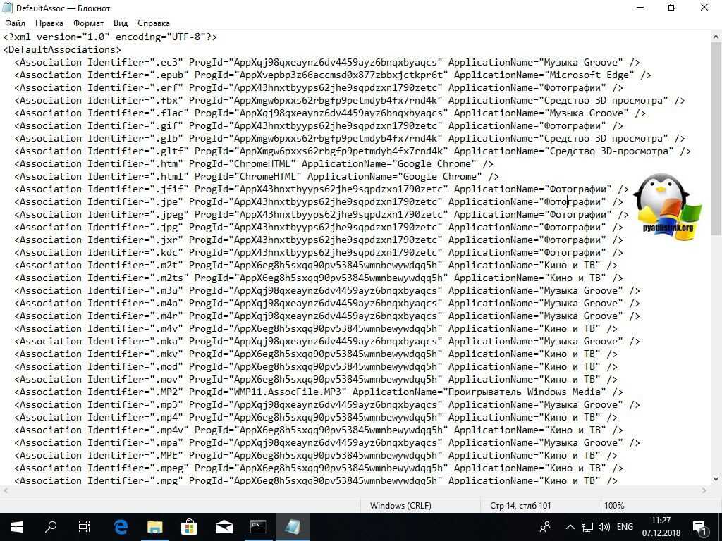 Оставляем именно только их и саму конструкцию <DefaultAssociations>. В итоге у меня файл DefaultAssoc.xml имеет вот такое содержимое: