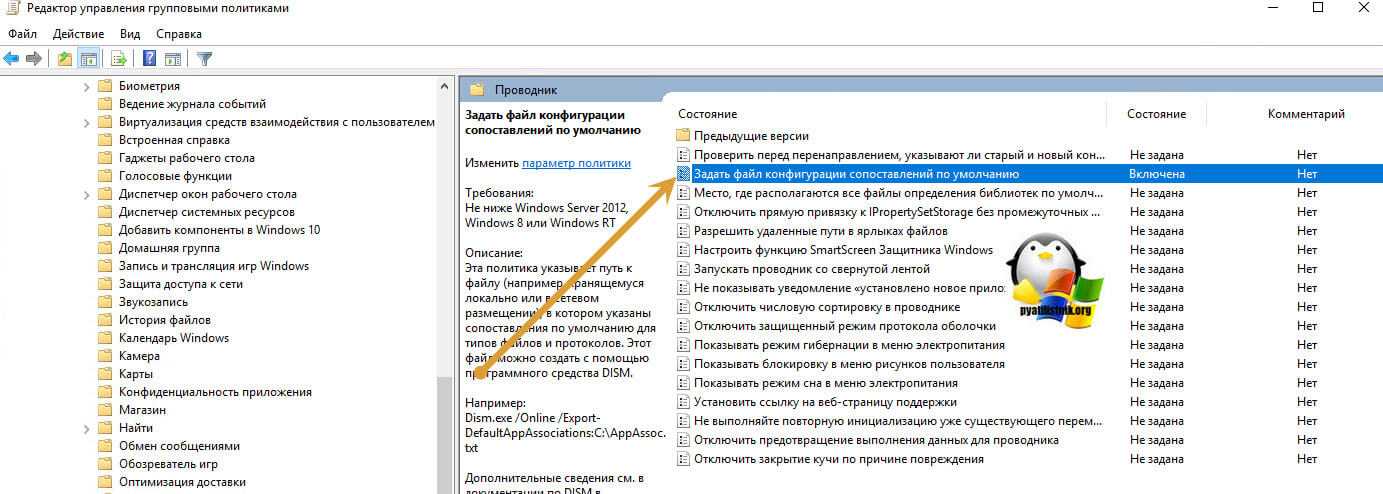 Как я и писал выше в моей задаче нужно данную операцию проделать для большого количества рабочих станций в моем домене Active Directory. В этом мне помогут групповые политики, которые позволяют централизовано назначить почти любые настройки нужным компьютерам в компании. Начиная с Windows 8.1 и продолжая в Windows 10, данных механизм слегка изменился и появилась возможность выгружать настройки по всем ассоциациям файлов и связанных с ними программ в конфигурационный файл XML.