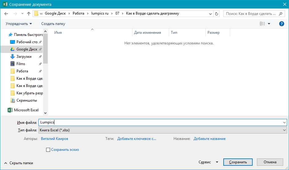 7. После ввода необходимых данных в окно Excel нажмите на символ «Редактировать данные в Microsoft Excel» и сохраните документ: «Файл» — «Сохранить как».