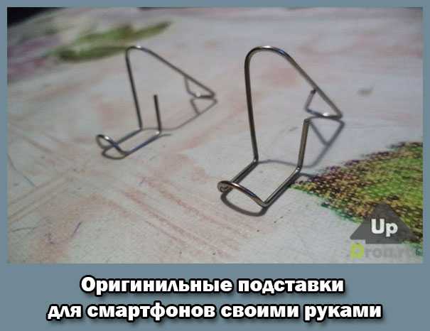 Самый простой способ. Для него потребуется всего лишь 2 канцелярские скрепки, которые сгибают. Металл с проволокой надежно зафиксируют смартфон и не согнутся под его весом.