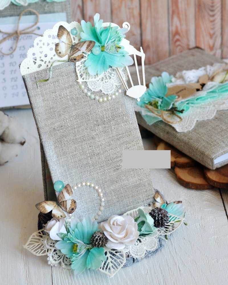 Такая самодельная подставка для мобильного телефона смотрится очень красиво и впишется в любой интерьер.