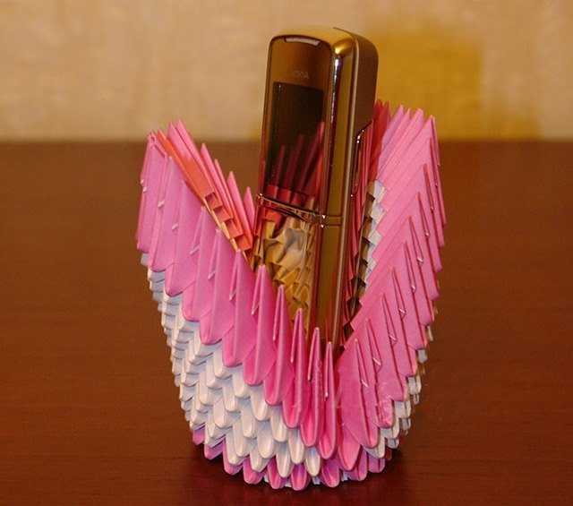 Если вы достаточно творческий человек, то подставку для своего телефона или даже в подарок можно сделать из модулей. Для этого понадобится освоить технику модульного оригами.