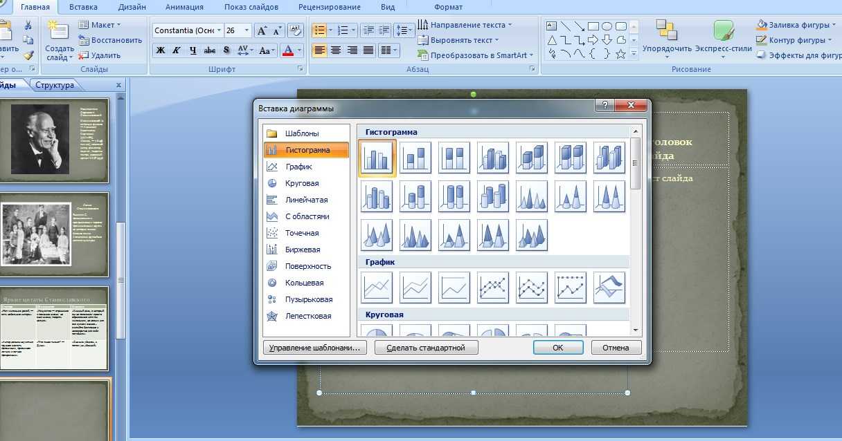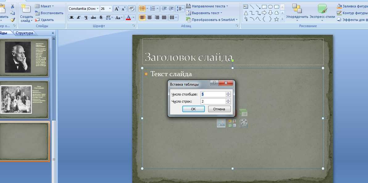 Слайды заполняются информацией точно так же, как и в программе Microsoft Word.