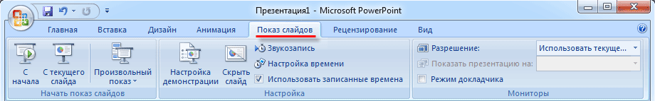 При показе презентации каждый слайд будет расширен на весь экран. По умолчанию переключение между ними происходит вручную — мышкой или кнопками со стрелками на клавиатуре.