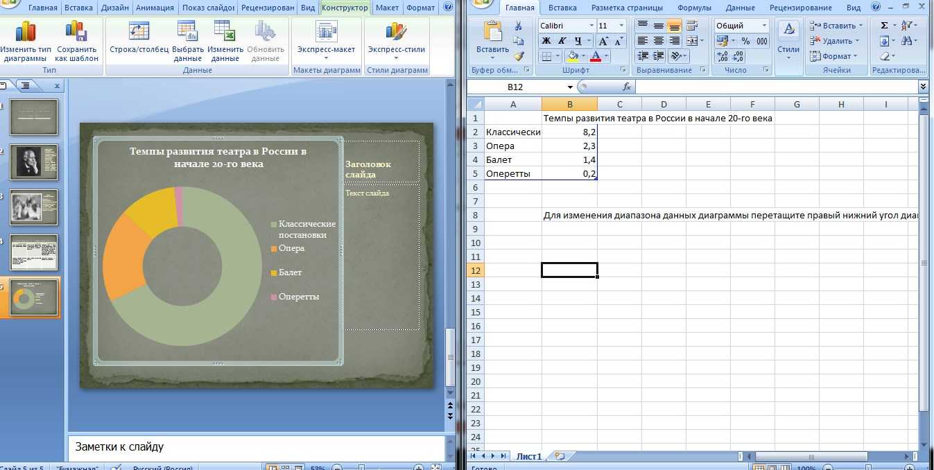 После выбора подходящего варианта откроется еще одна программа (Excel) с данными. Через них и нужно править добавленную диаграмму.