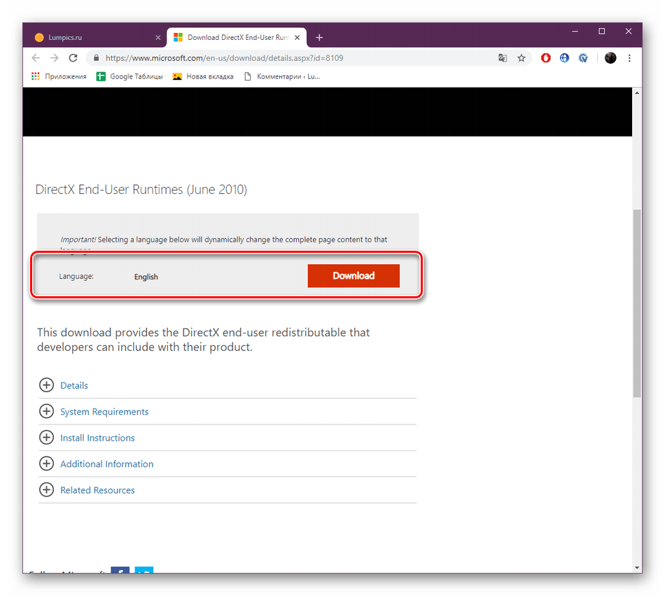 Другой вариант – скачать DirectX с официального веб-сайта корпорации Microsoft.