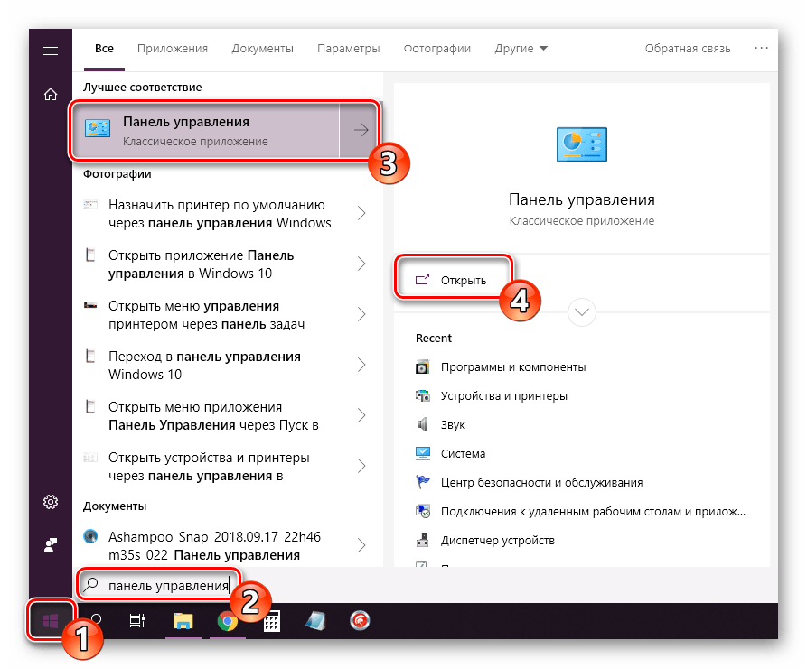Заходим в поиск и пишем: «Панель управления». В панели находим и запускаем утилиту удаления программ: